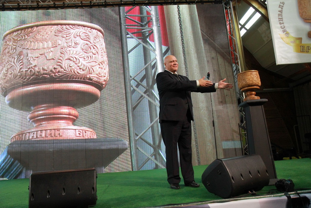 С.Б. Такая обстановка как раз и отражена в названии фестиваля, оно несёт в себе глубокий смысл. Братина – один из старейших русских сосудов - является образцом русского мастерства. Устойчивость и прочность братины была своеобразным символом крепости дружеских отношений. Во время торжеств и празднеств обряд круговой чаши убеждал в добрых намерениях и считался знаком доверия. Поэтому абсолютно логичными стали и наши призы в конкурсной части фестиваля – резные чаши-братины. А в главную чашу, исполненную замечательным резчиком Олегом Мироновым, в завершение праздника мы наливали настоящий мед и пускали ее по кругу, в зрительный зал.